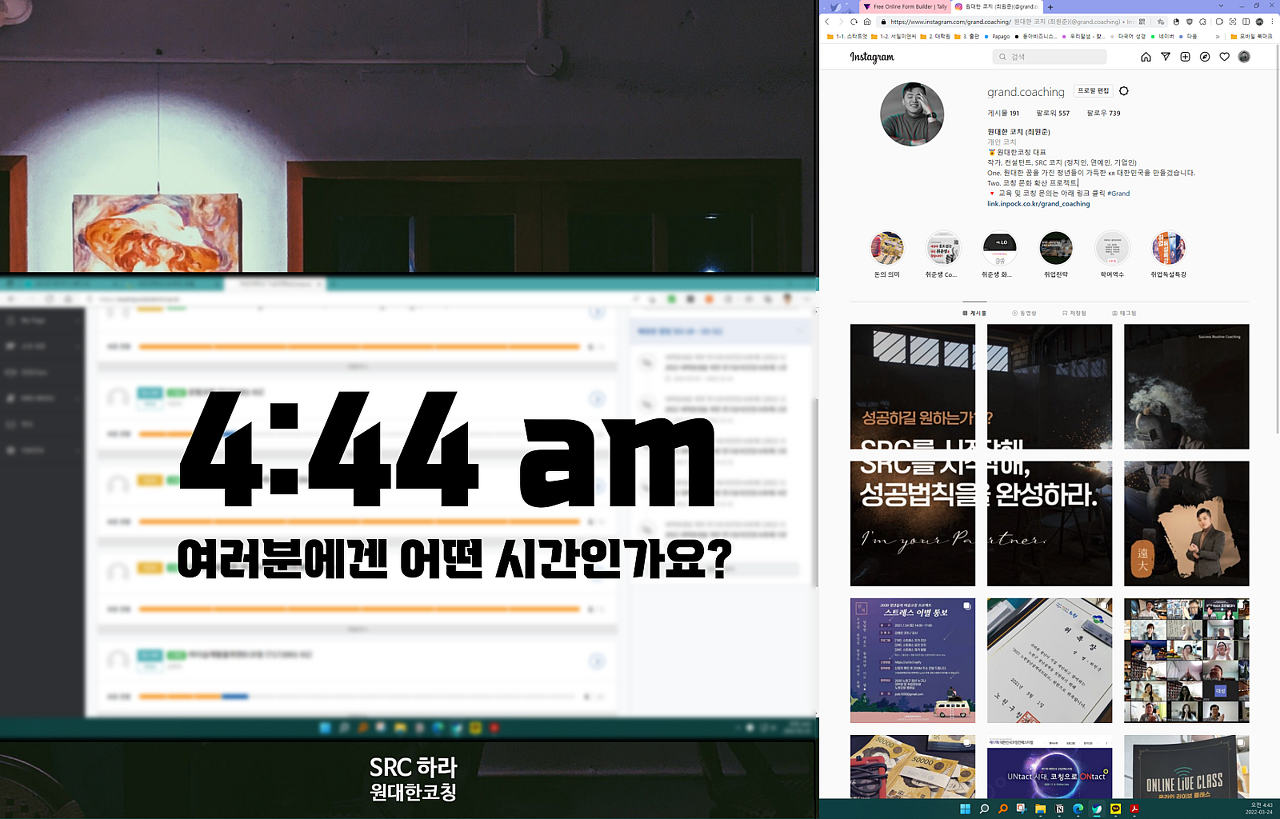 이것 저것 빠르게 시작한 2022년 3월 24일 새벽 4시는 이렇게 바쁘게 돌아갔습니다.